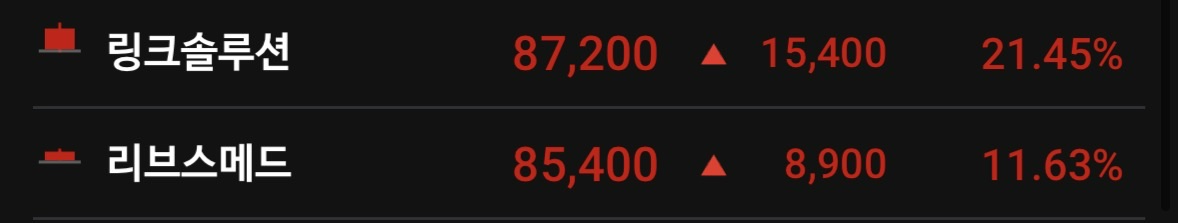 * 티씨머티리얼즈 (+25.50%) & 링크솔루션 (+21.45%)