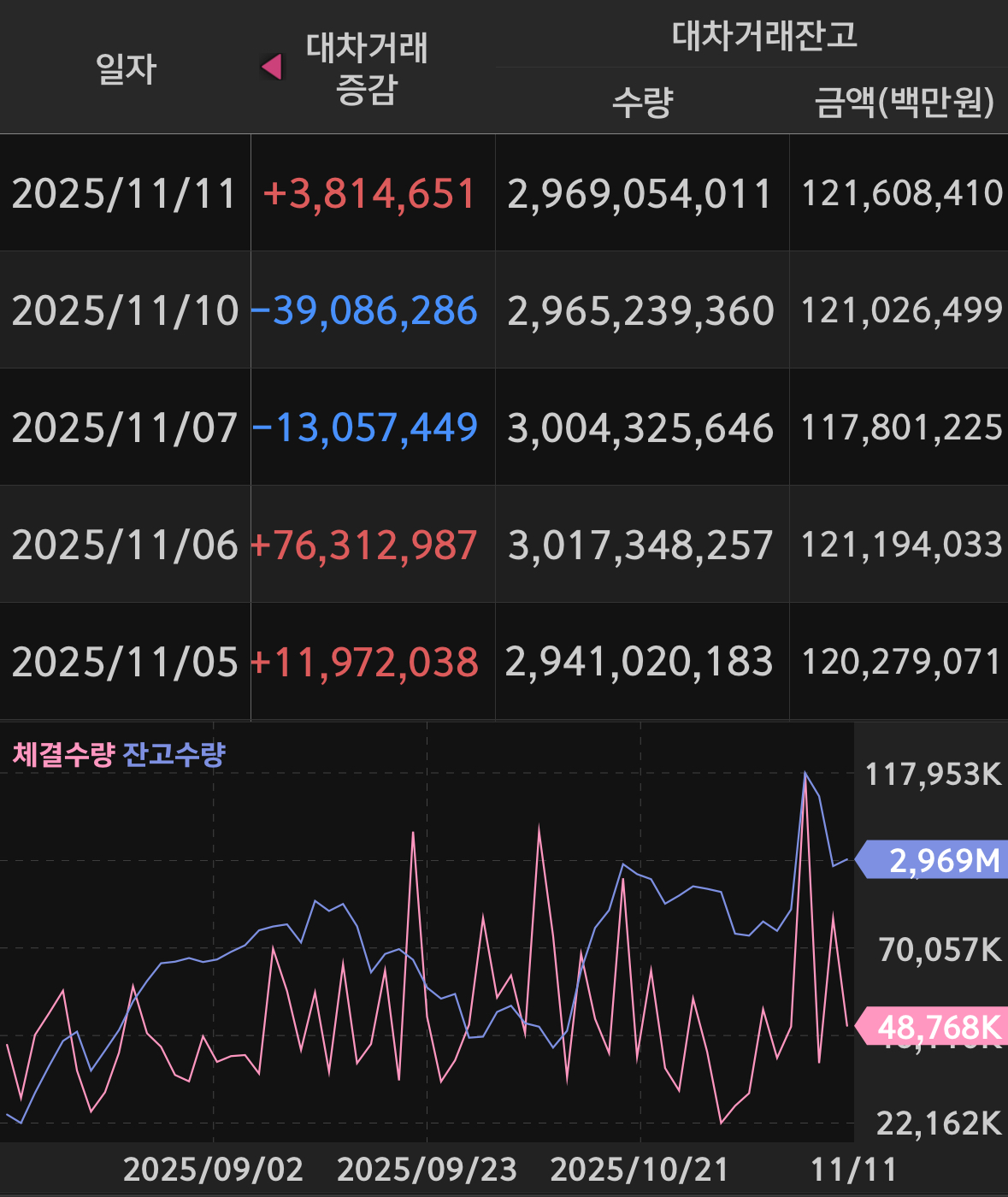 * 대차 잔고는 121조가 되며 0.6조가 조금 안 되는 상승이 기록됨. 코스피의 거래대금으로 나눠보면 6배가 조금 넘는 모습.