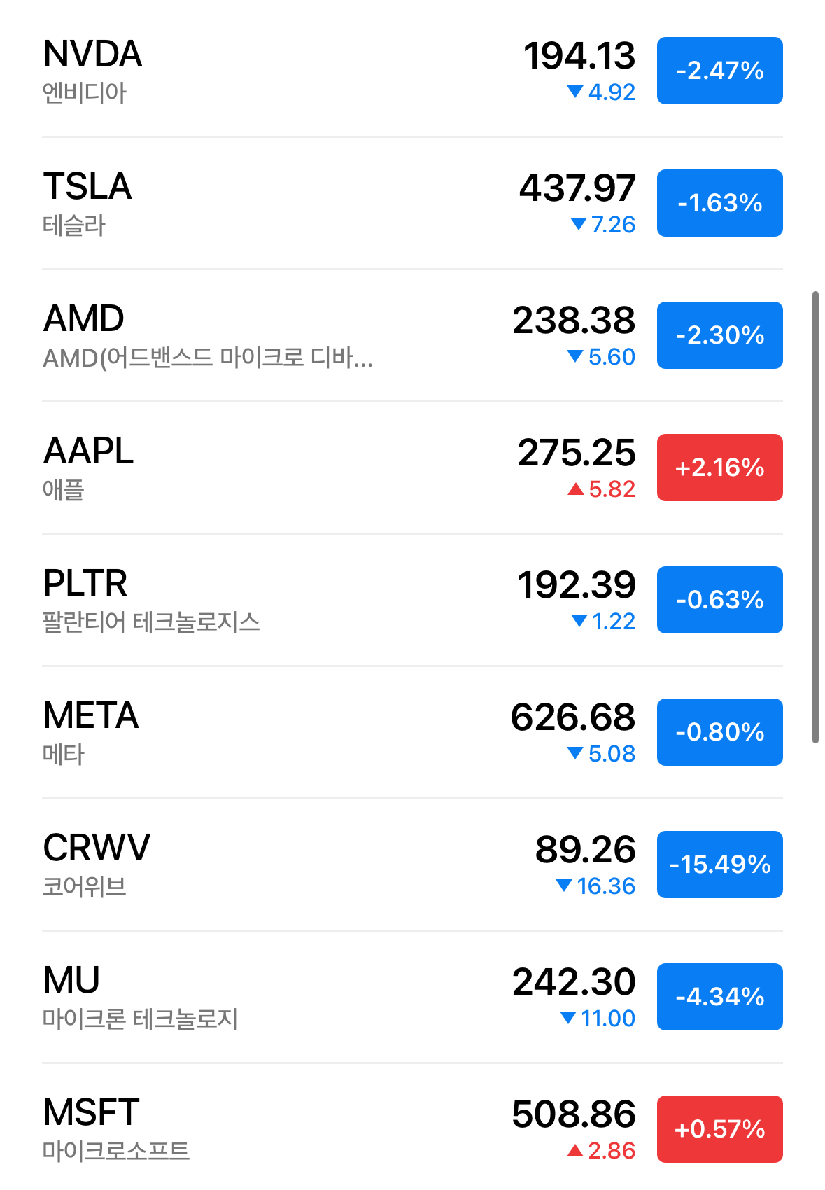 * 나스닥은 0.2% 하락이 진행되고 있음. AI 거품을 걱정하며 엔비디아 2.47% 하락에 AMD 2.3, 데이터센터 발 수익성 걱정에 코어위브 15.49%, 마이크론 테크놀로지도 4.34% 하락하고 있음.