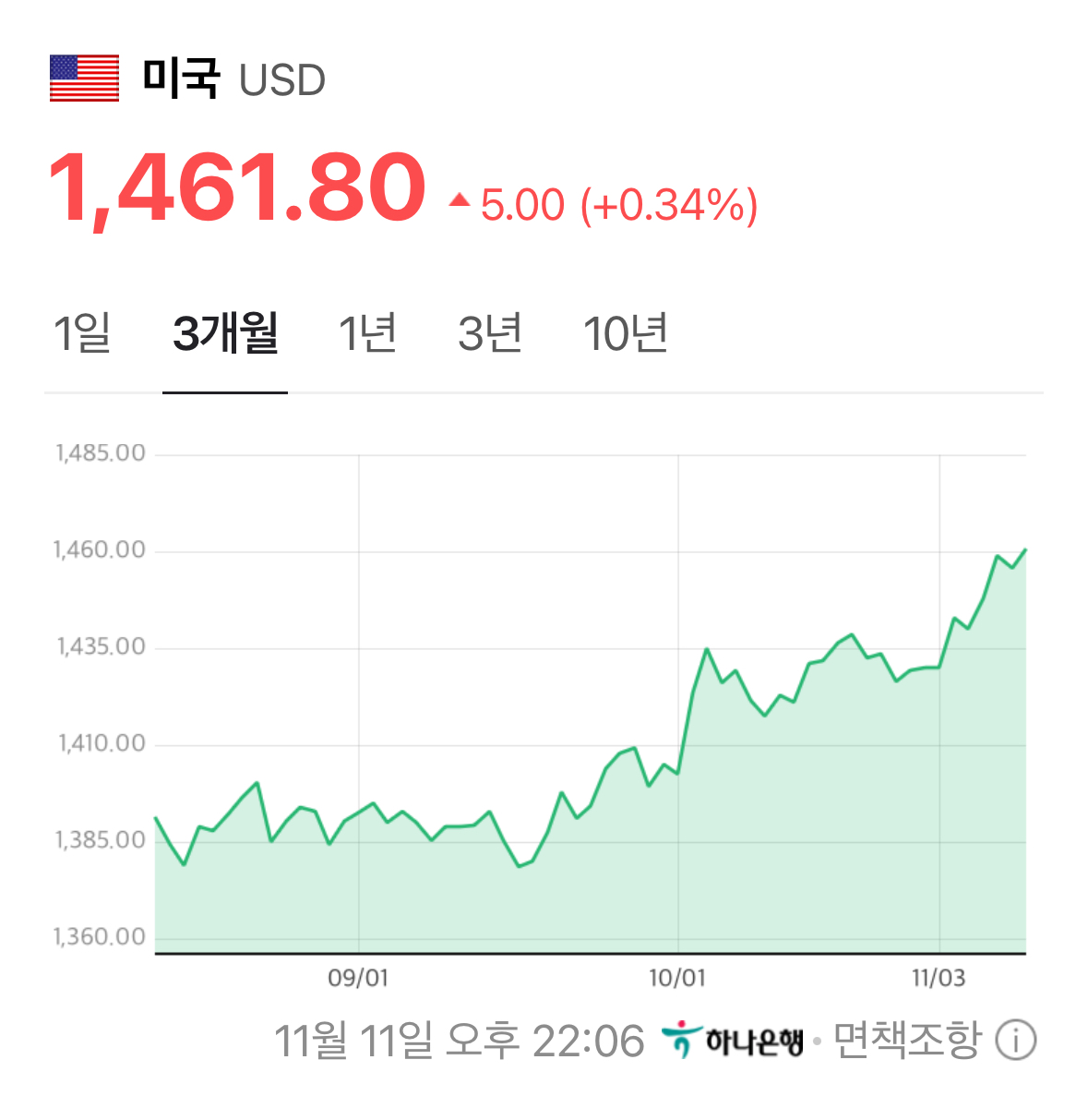 * 원/달러 환율은 1,461원으로 새로운 고점을 연이어 갱신하며 투자자들을 불안하게 만들기 시작하고 있음.