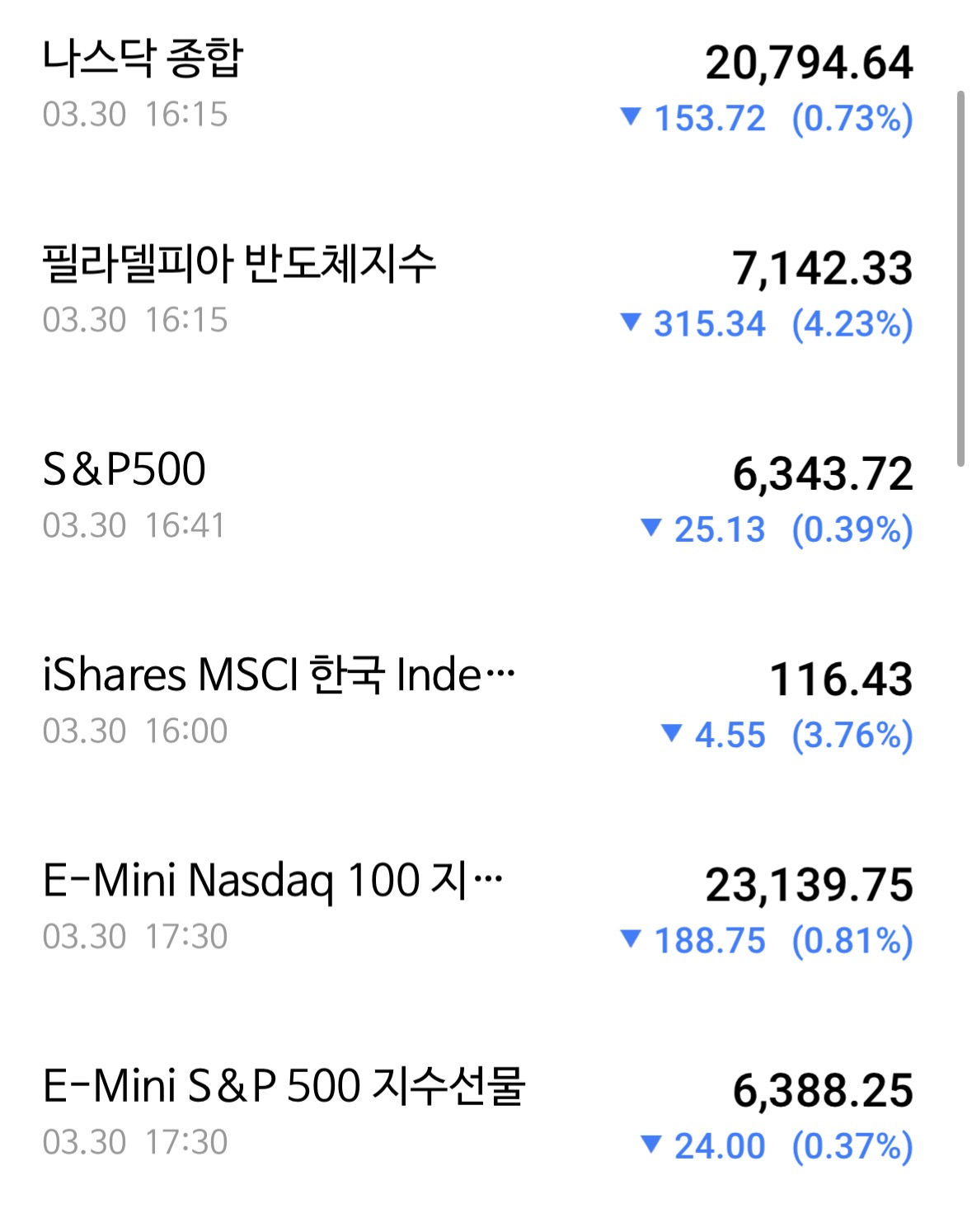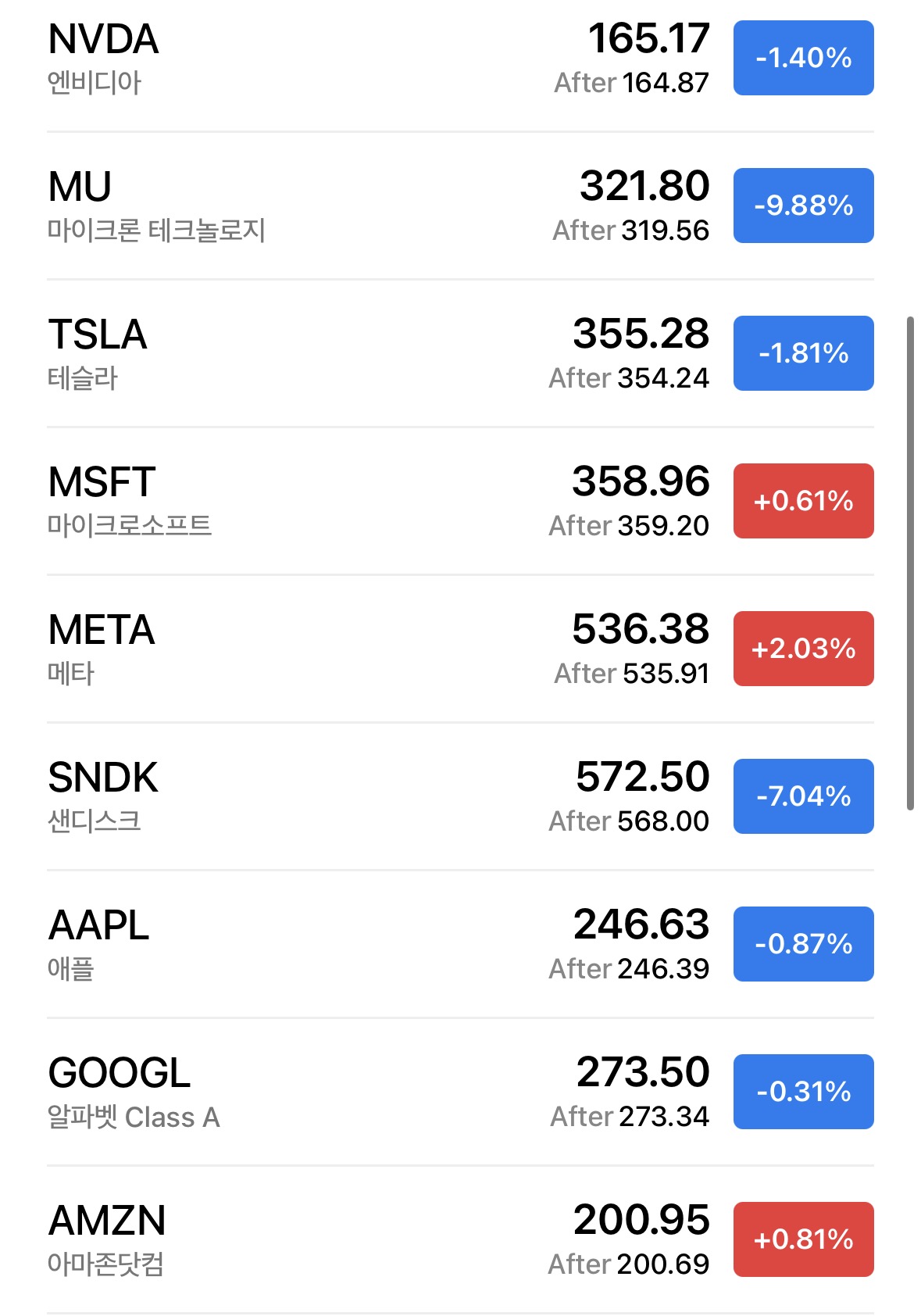 마이크론 -9.88%, 샌디스크 -7.04% 급락이 지수를 끌어내림.