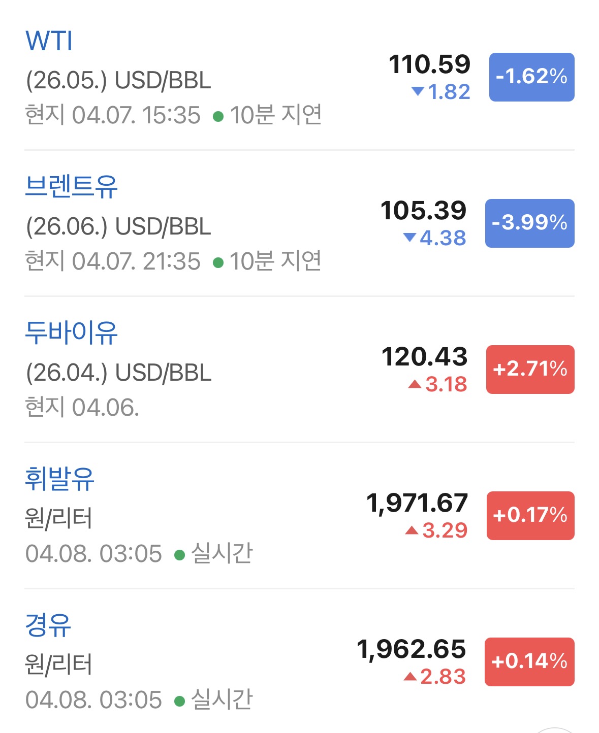• WTI 기준 -1.62% 하락 (110.59달러)