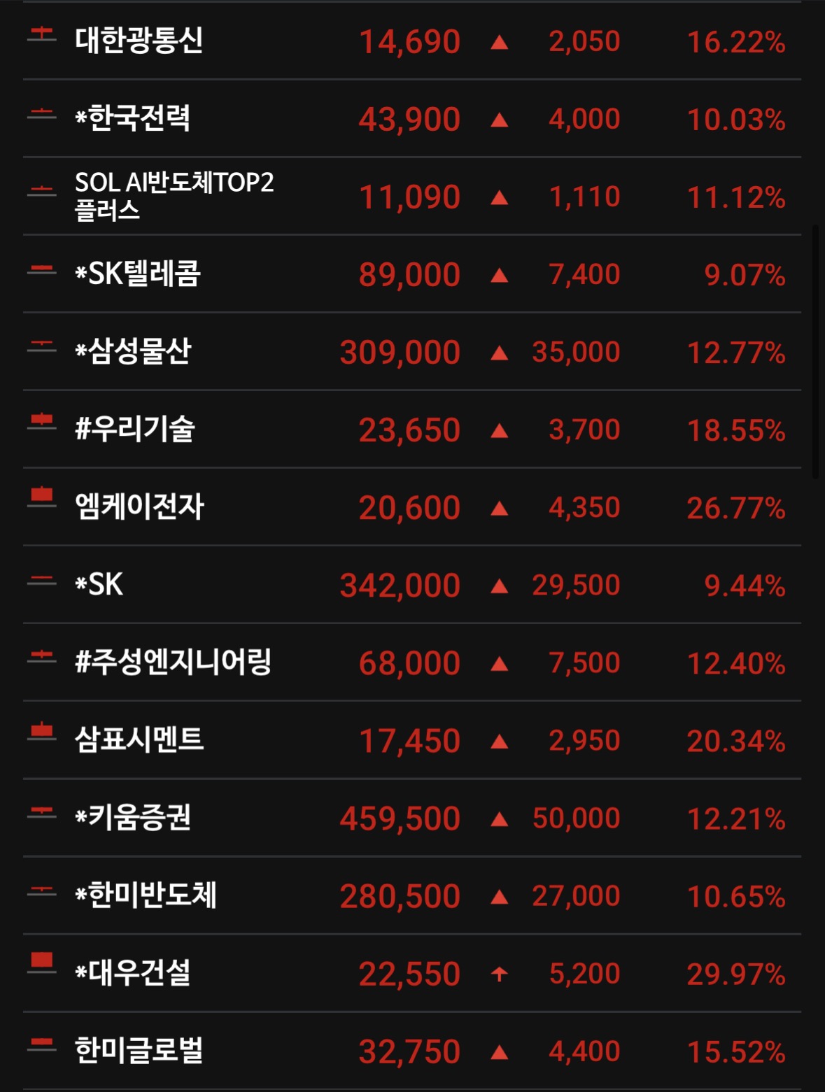 오늘은 오른 종목이 매우 많네요. 캡쳐로만 지켜보겠습니다.