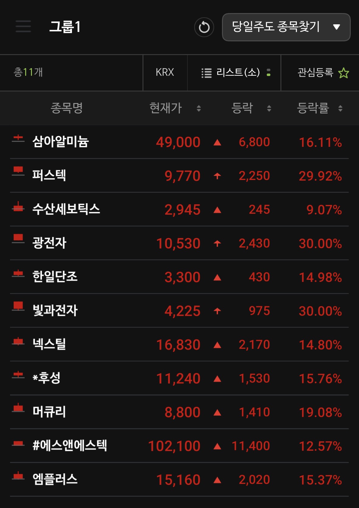 * **광전자 (+30.00% / 상한가) & 빛과전자 (+30.00% / 상한가):** 두 종목 모두 **액면병합** 후 기업가치 제고(저가주 이미지 탈피) 전략과 더불어, 초저전력 광트랜시버 등 신기술 상용화 소식이 더해지며 상한가를 기록했습니다.