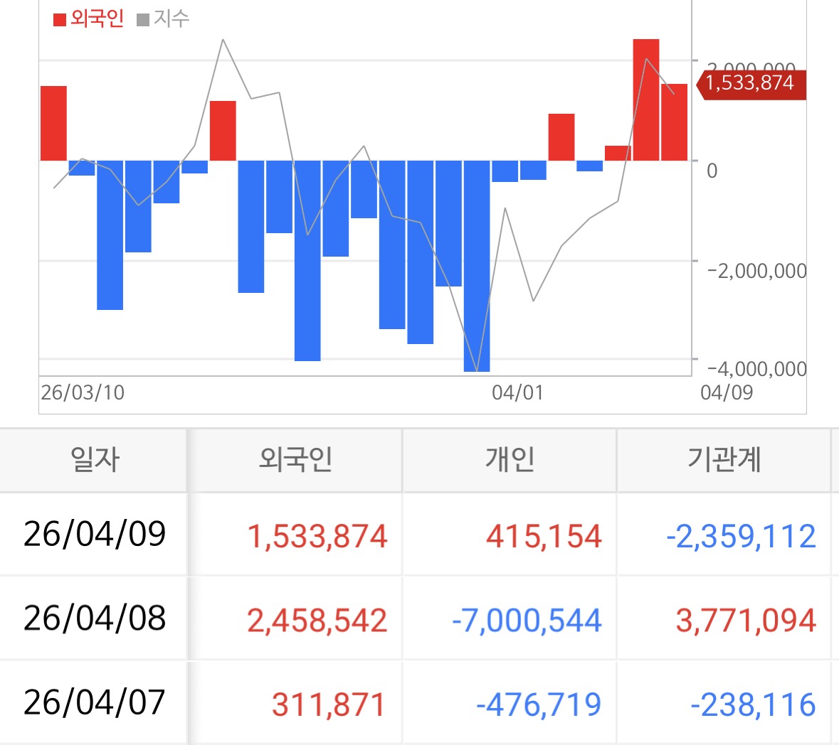→ 외국인 +1조 5,339억 매수