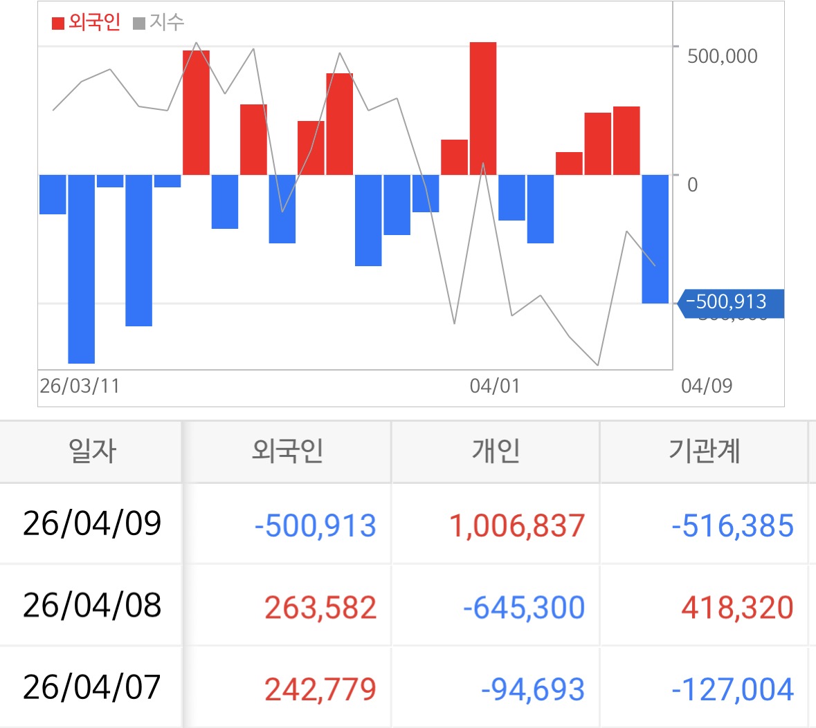 → 외국인 -5,009억