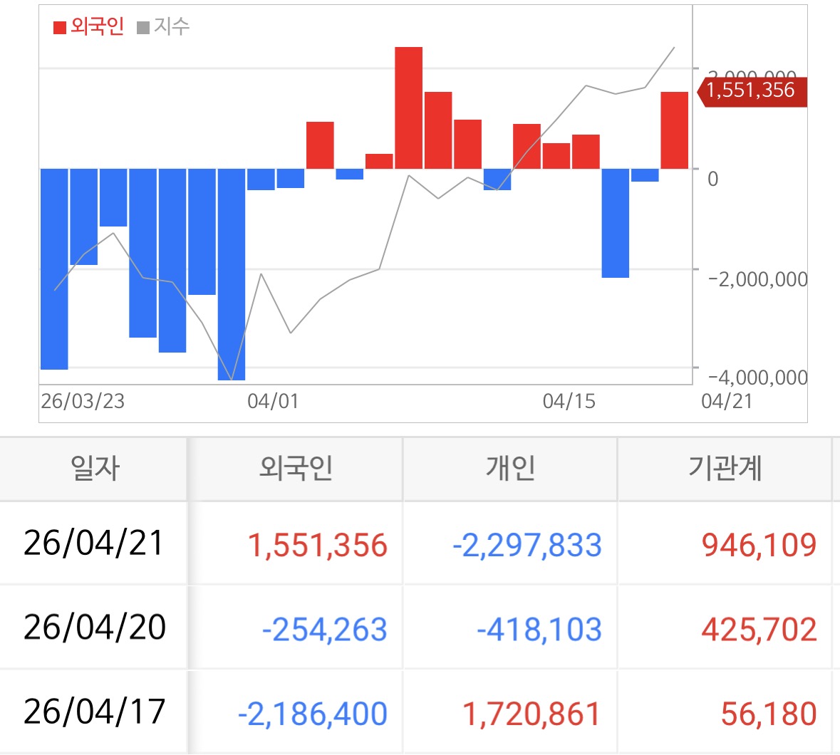 외국인: +1.55조 매수