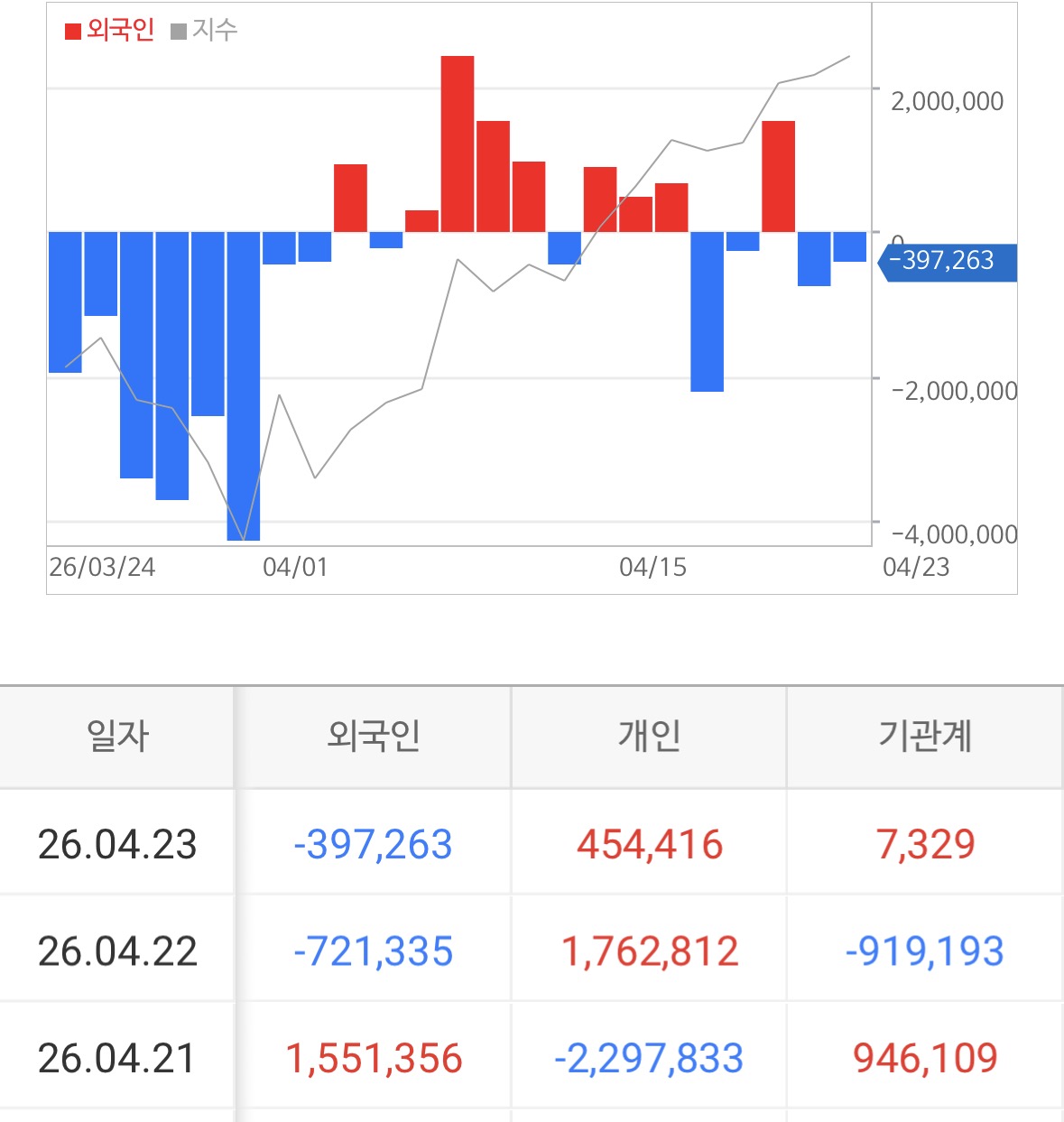 👉 외인·기관 동반 매도 = 단기 부담 구조