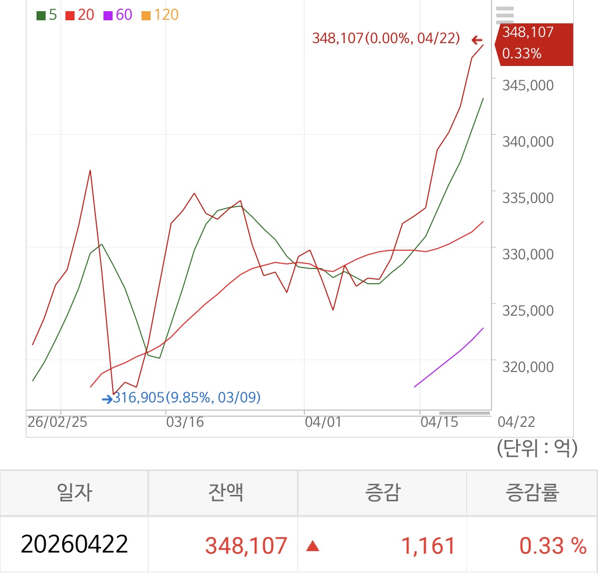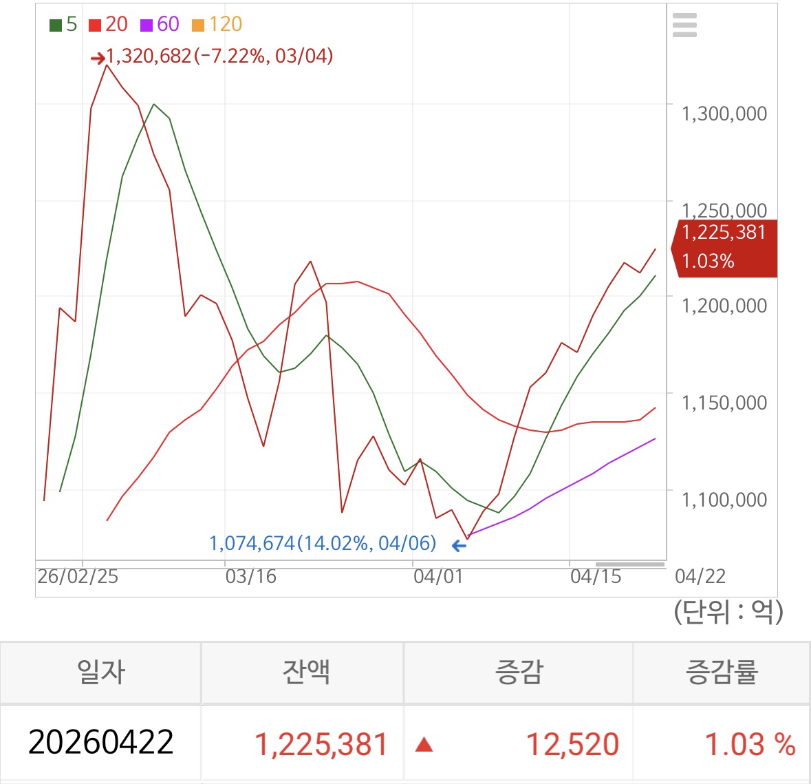 * 고객예탁금: 약 122.5조 (+1.03%)