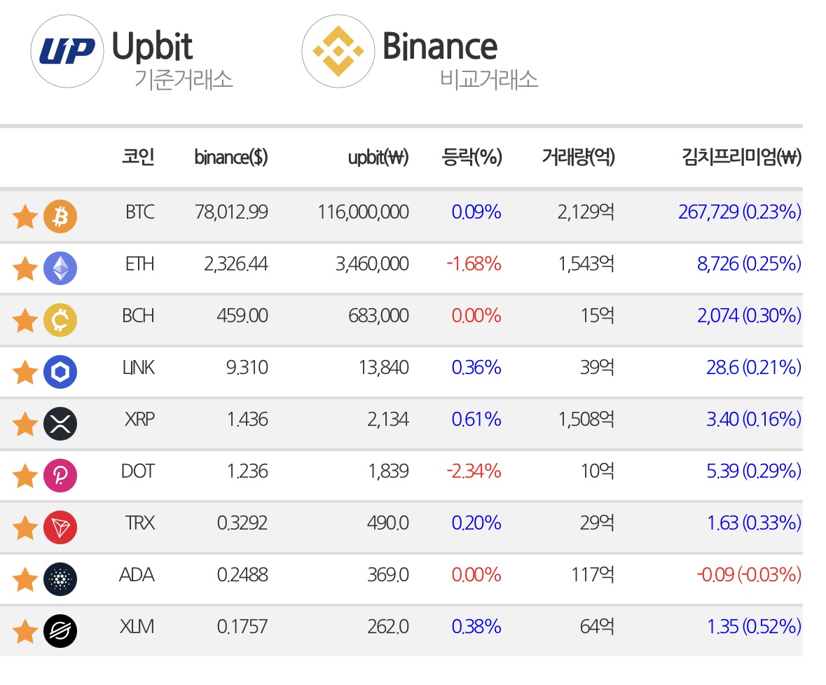 김치 프리미엄은 **0.23%**로 소폭 유지.
