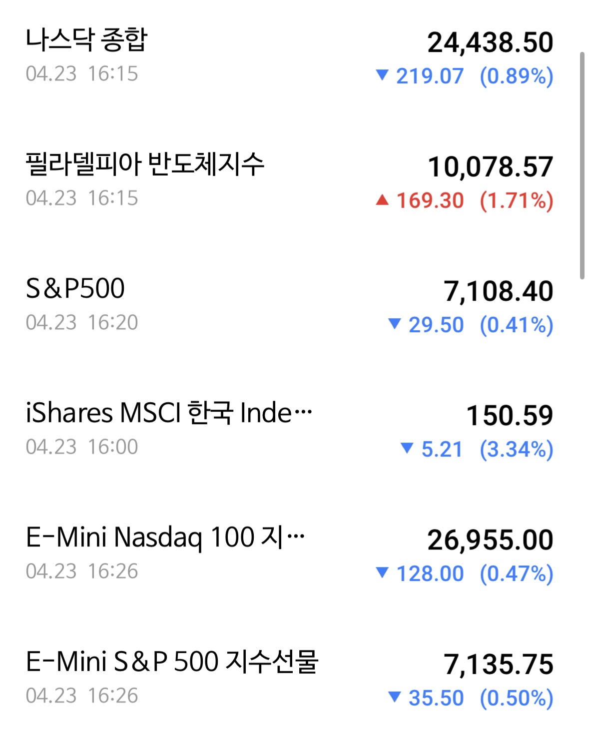 * 야간선물 기준 약 -1% 하락 출발 가능성