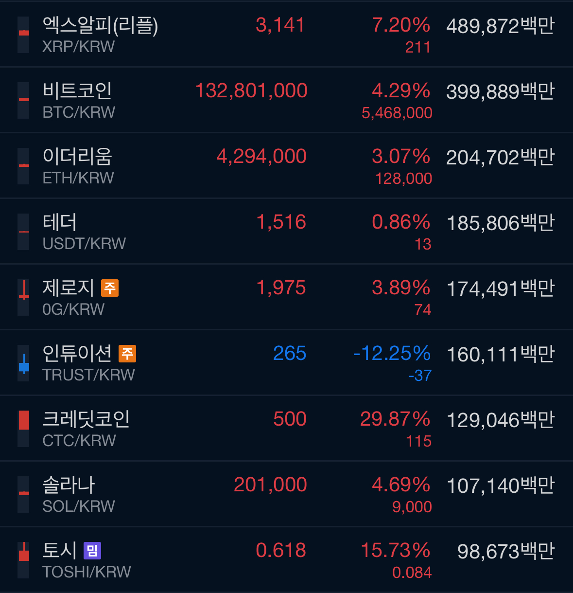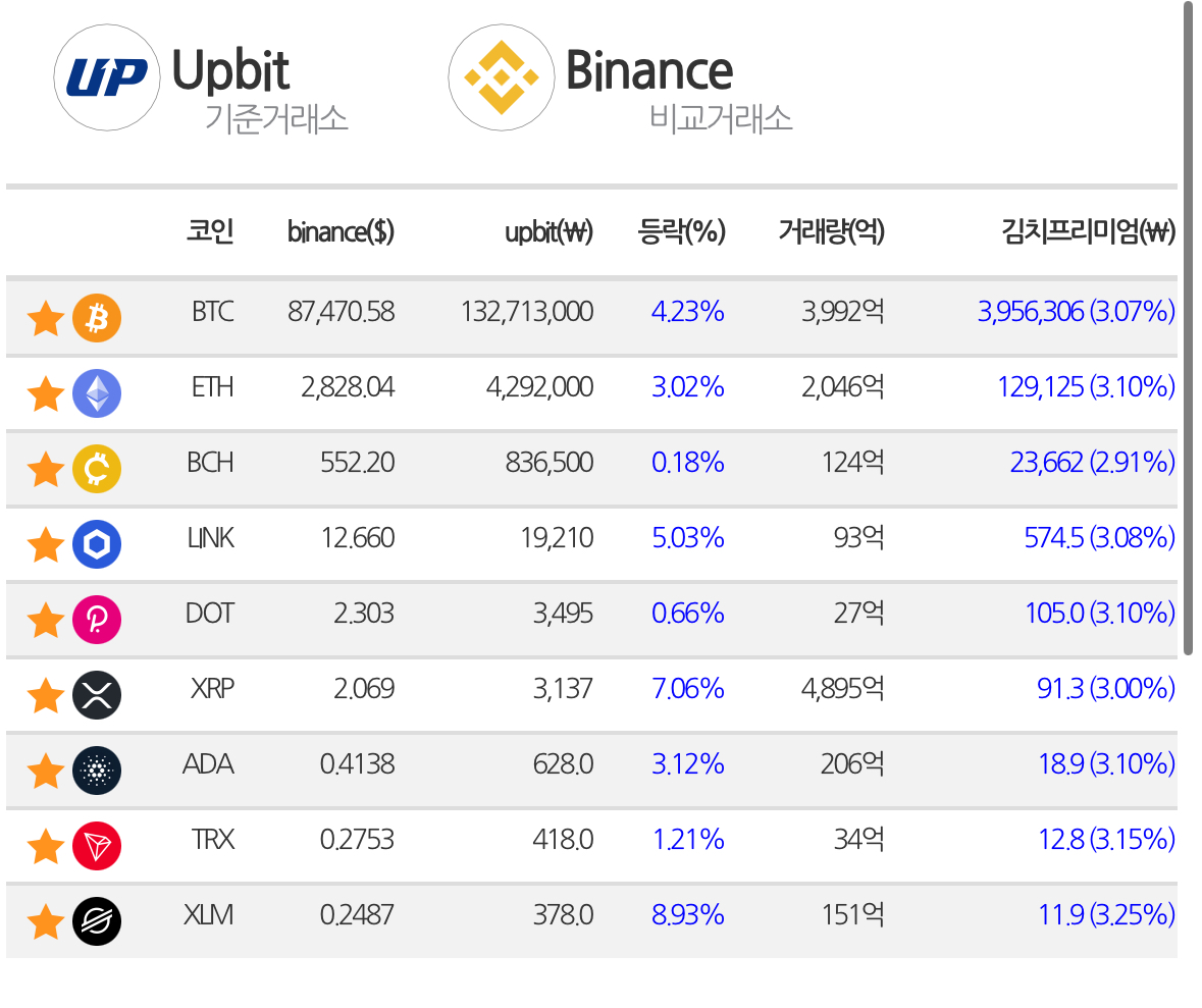 * 비트코인은 1억 3,280만원으로 전일 대비 4.29% 상승하였음. 기요사키 형이나 다른 고래가 일부 팔아서 수익을 실현했다고 하는데 다 나왔다고 생각했는지 살짝 반등을 보이고 있음. 김프가 3.07%로 조금 올라왔음.