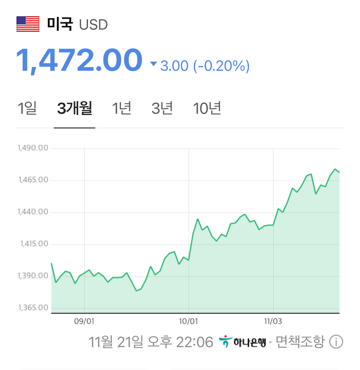 * 원/달러 환율은 1,472원으로 최고점을 찍더니 살짝 쉬어가고 있음.