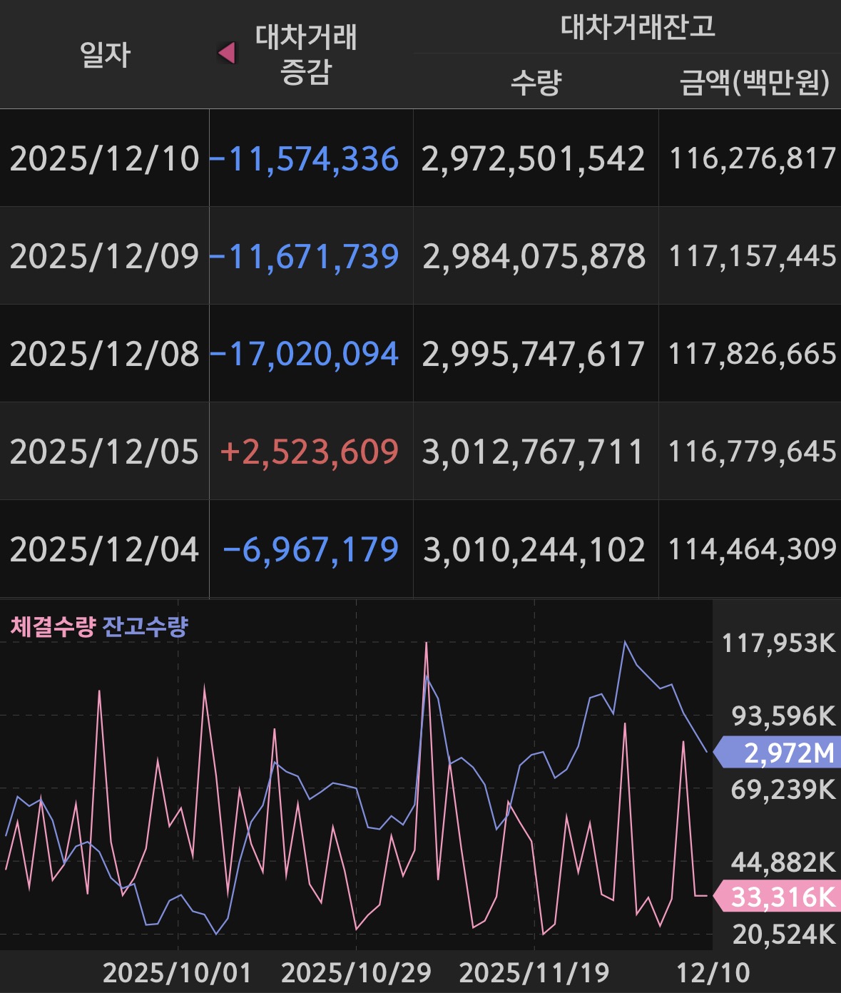 * 대차 잔고는 116.3조 가량으로 어제는 0.8조 가량이 떠나는 모습. 거래대금과의 관계는 5.1배로 기록됨.