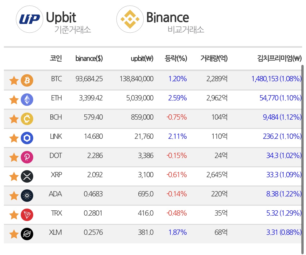* 비트코인은 전일 대비 1.19% 오르며 1억 3,884만원에 도착하였음. 나스닥보다도 더 높게 오르고 있음. 김프는 1.08%로 높지 않았음.