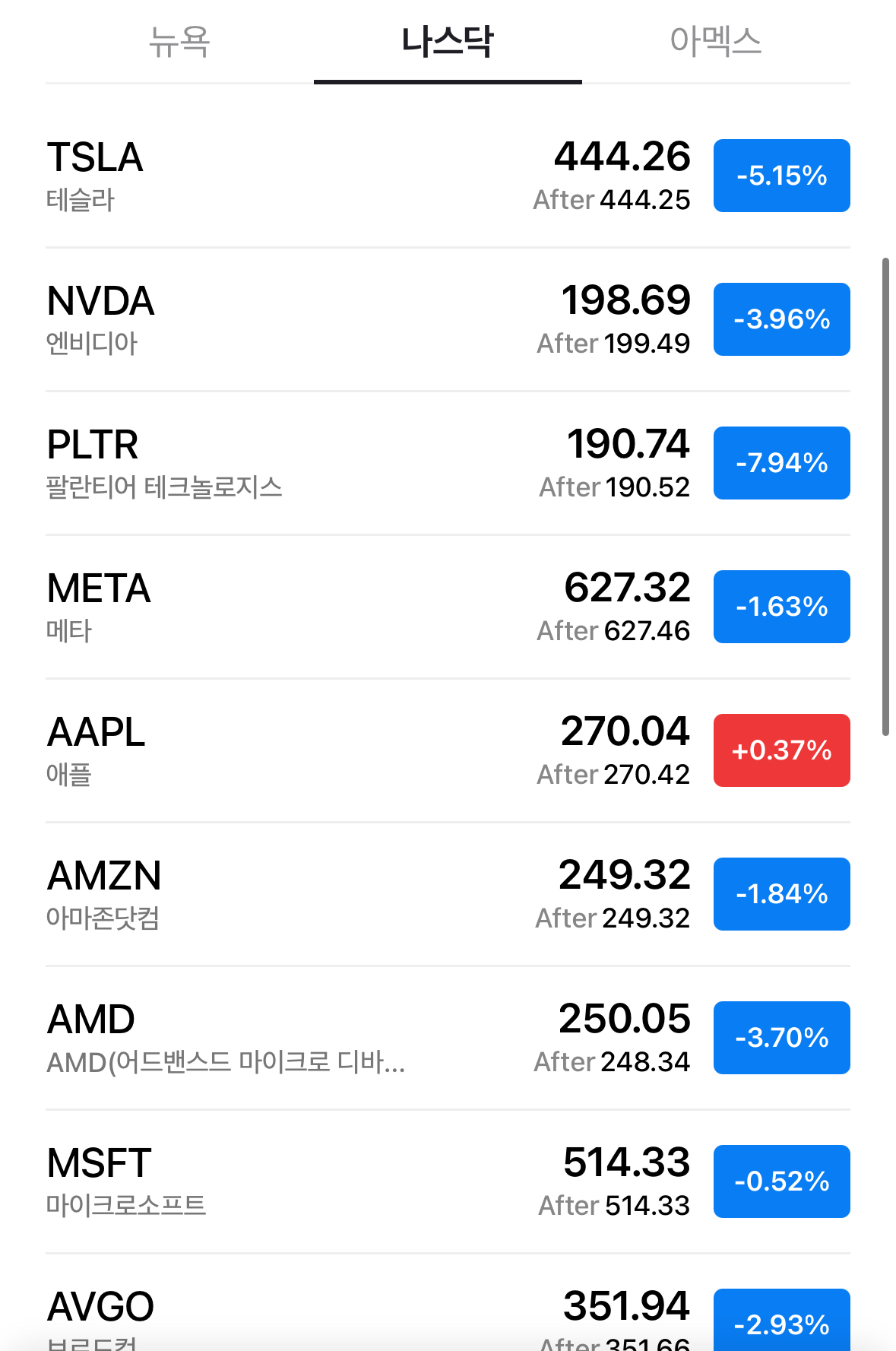 * 나스닥은 1.82% 하락으로 진행하고 있음. 주식이 너무 높은 가격이라며 경고가 나오는 분위기임. 테슬라가 4.11% 빠지고 엔비디아 3.24%, 팔란티어 8.86% 등 우르르 떨어지는 중.