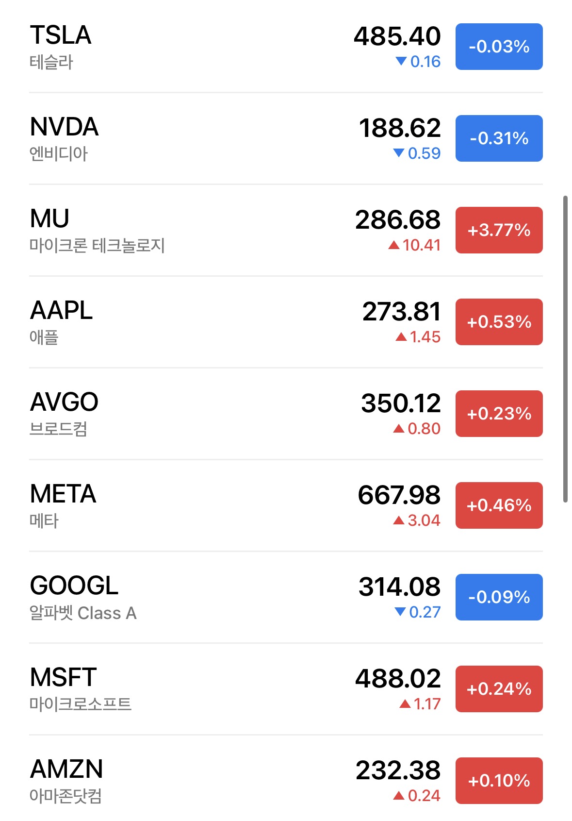 * 나스닥은 0.22% 상승으로 마무리 됨. 미국은 크리스마스 이브라서 주식장이 일찍 문을 닫았음. 덕분에 큰 움직임은 보이지 않았음. 마이크론만 3.77% 오르며 반도체의 훈풍을 불게하는 중.